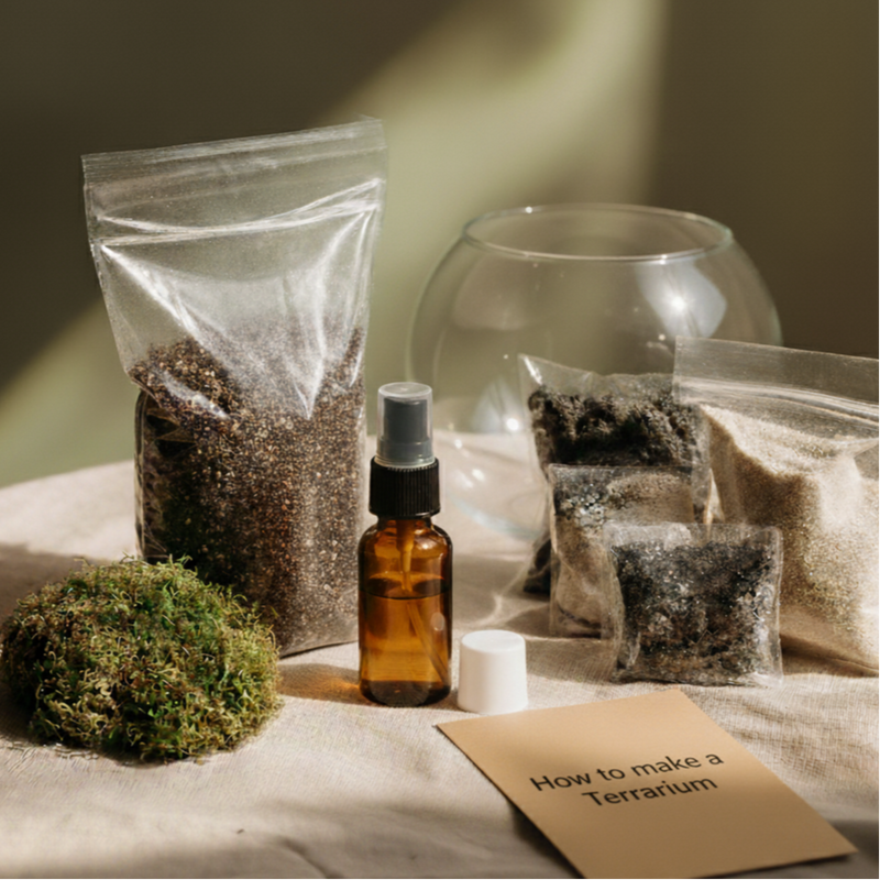 Everything you need to build a thriving closed terrarium in one box, no need to source extra materials.
